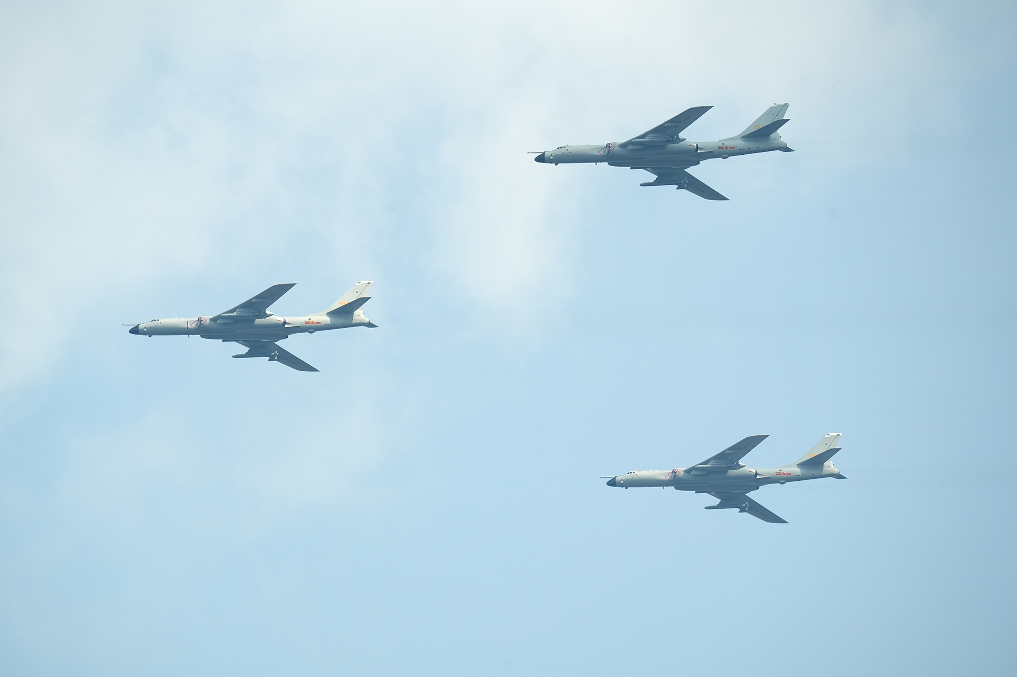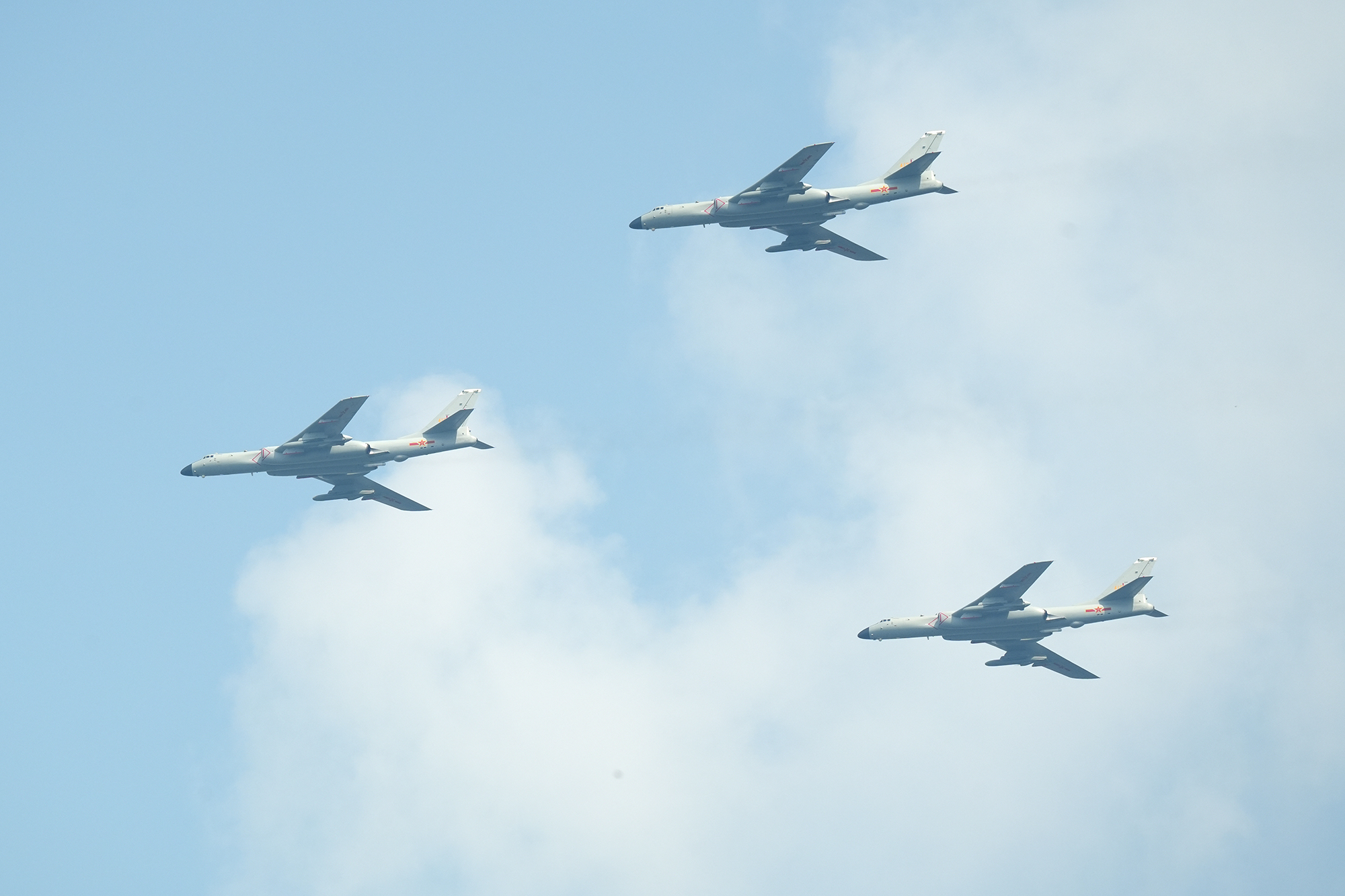 轰炸机梯队接受检阅。受阅的轰6N战略轰炸机以及轰6K、轰6J,是我军空基远程打击力量。摄影:郑宇航