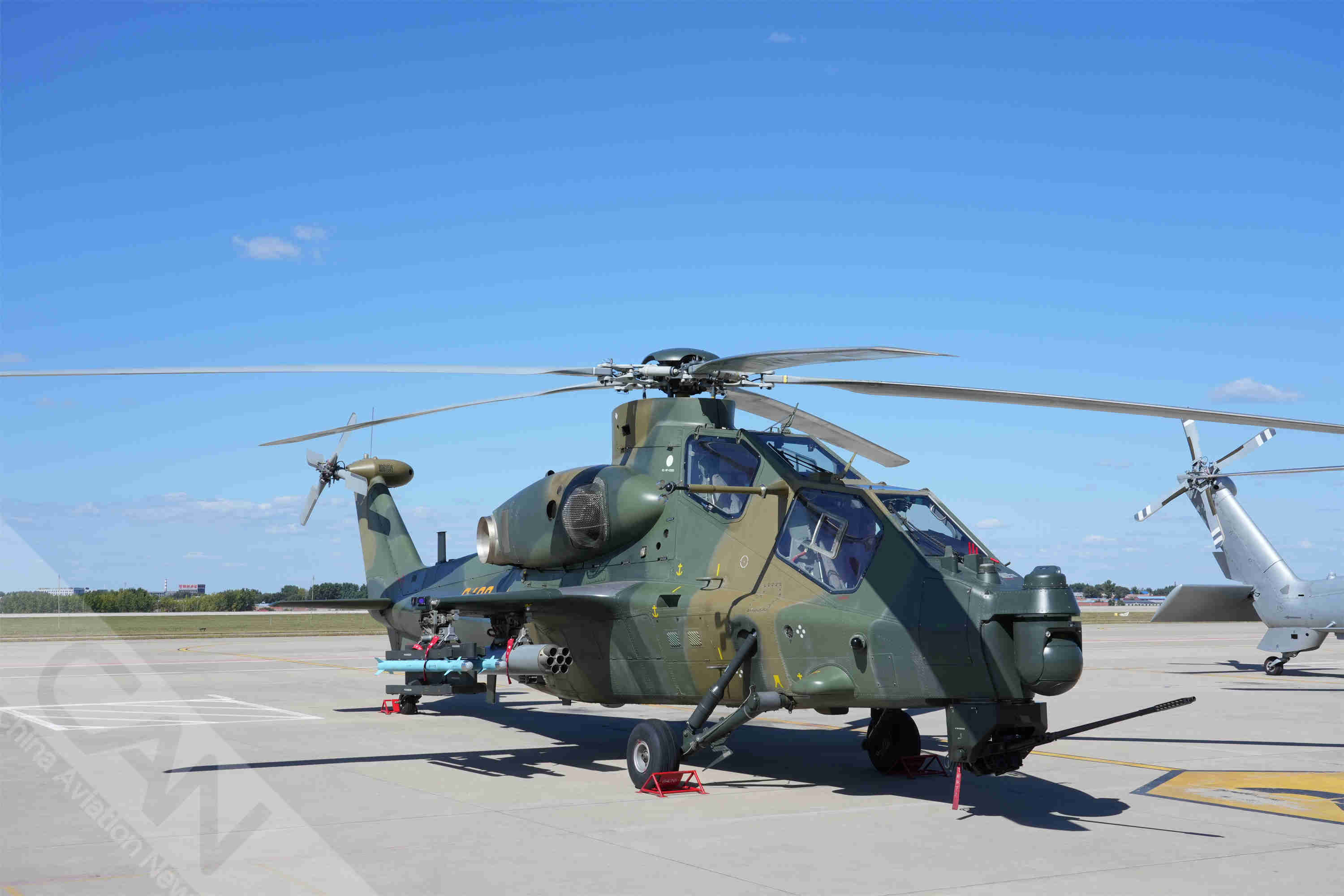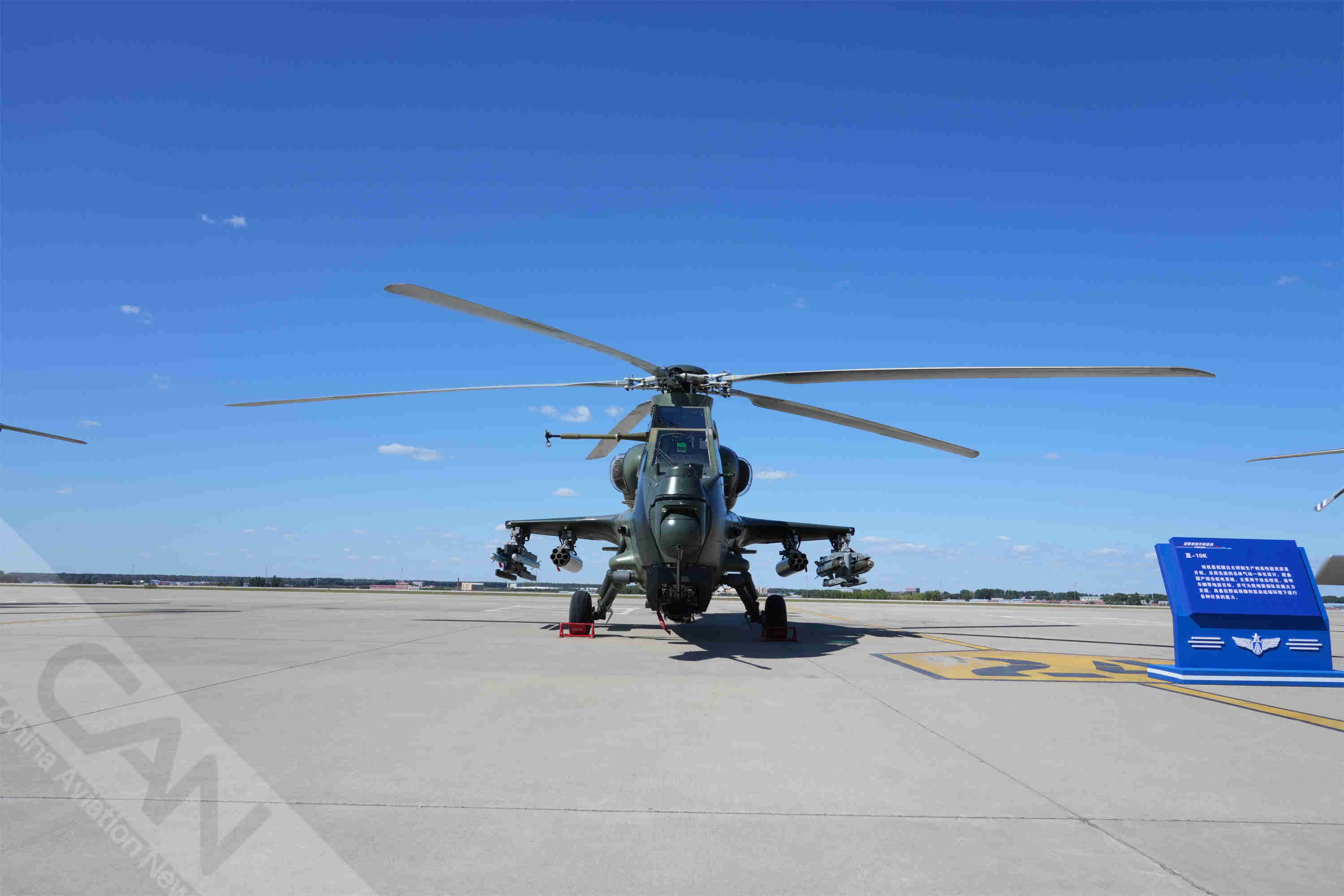 长春航空展室外展区,近距离看直10K,该机是我国自主研制生产的高性能武装直升机,主要用于攻击坦克、装甲车辆等地面目标。摄影:郑宇航