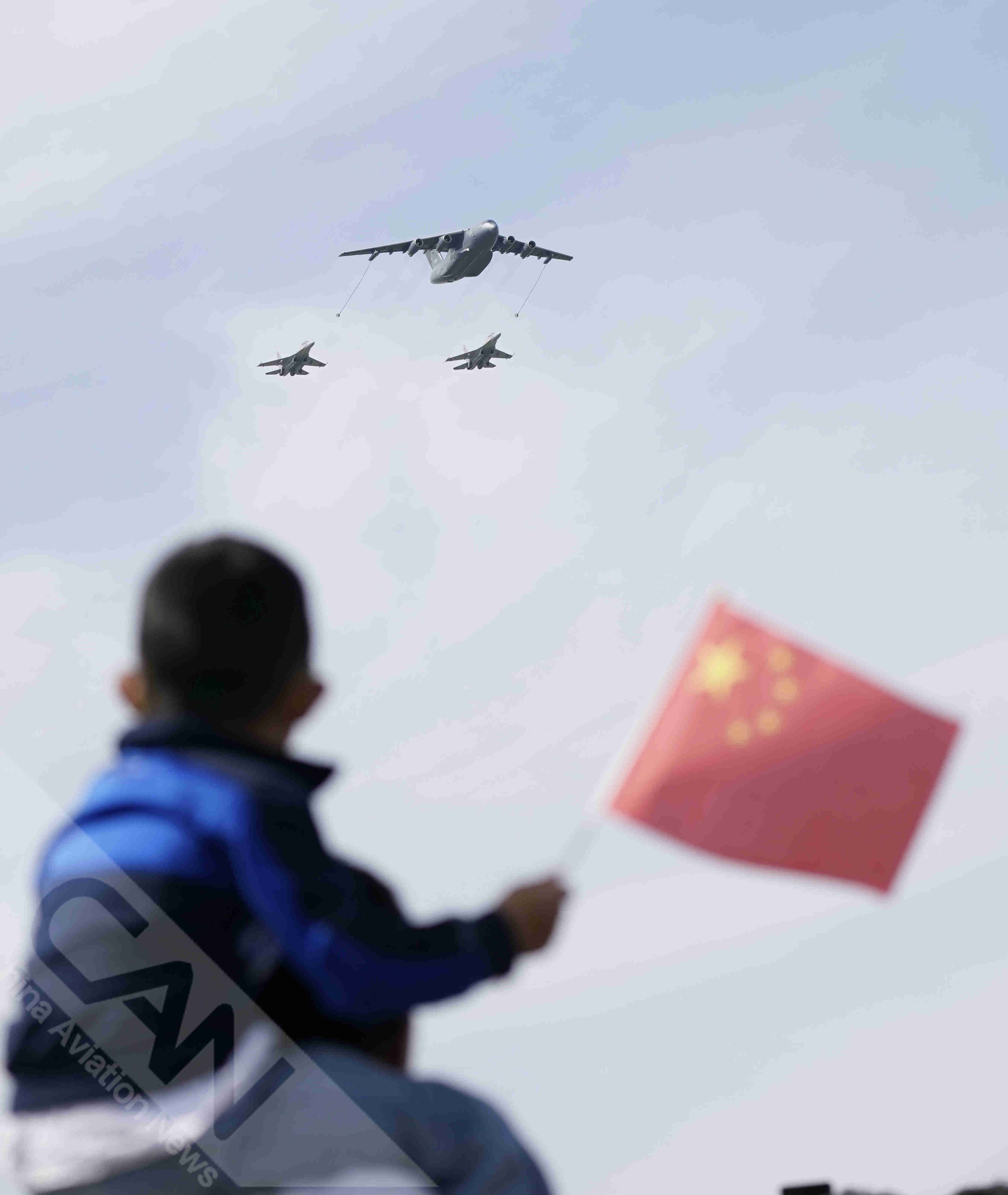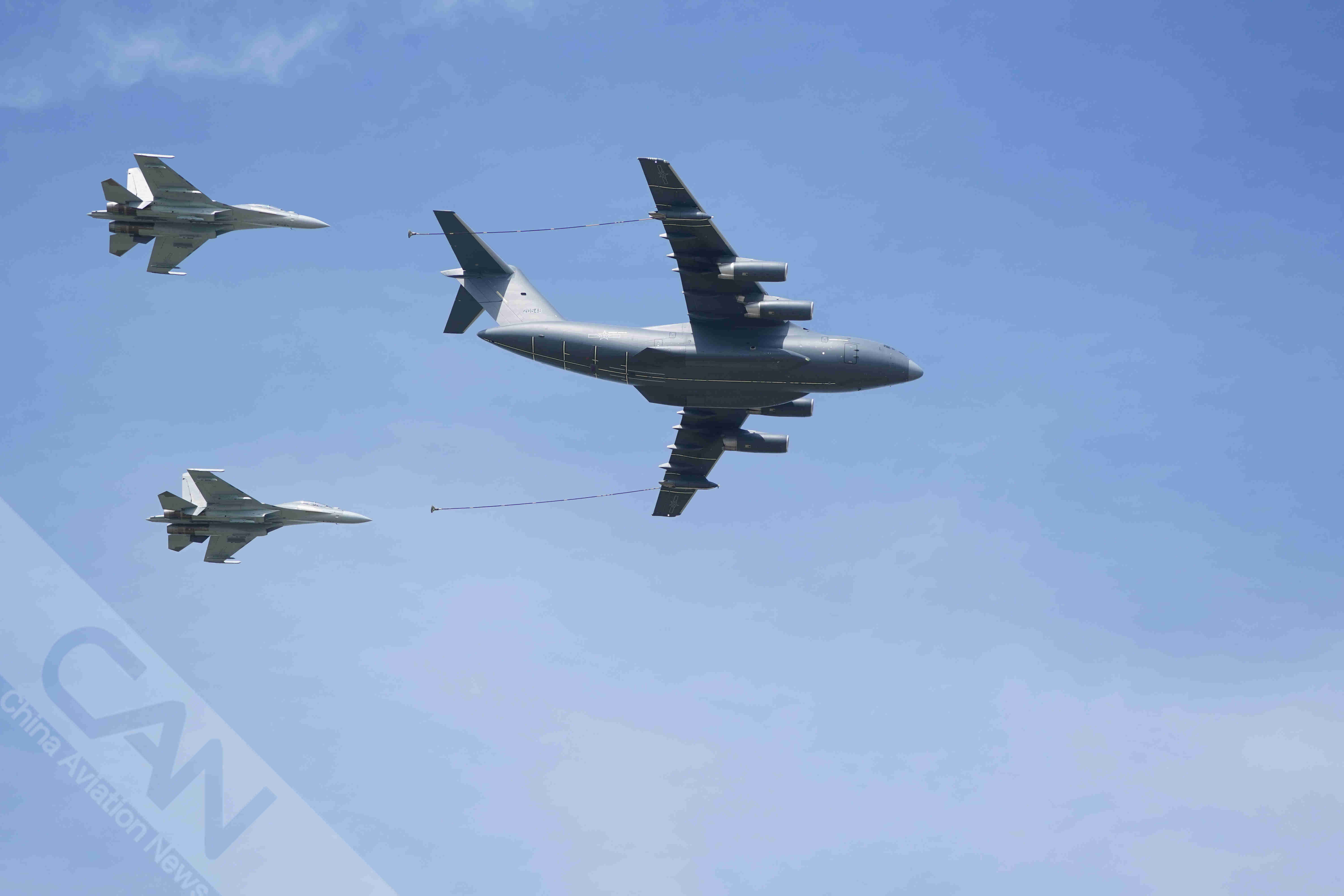 9月19日,2025年长春航空展拉开帷幕,运油20A与歼16编组展示空中加油与对地打击能力。摄影:岳书华