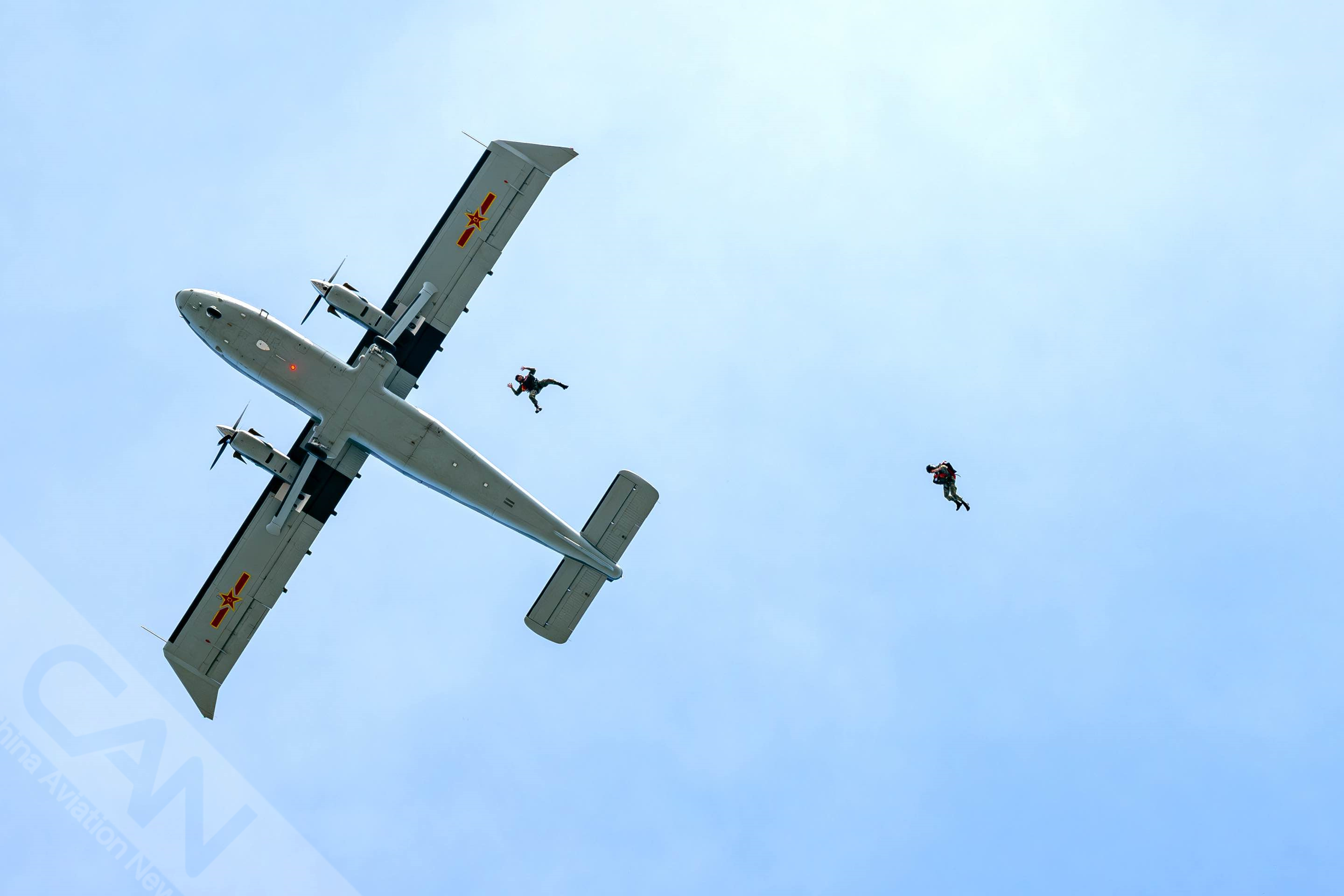 运12D搭载蓝鹰”跳伞队进行表演
