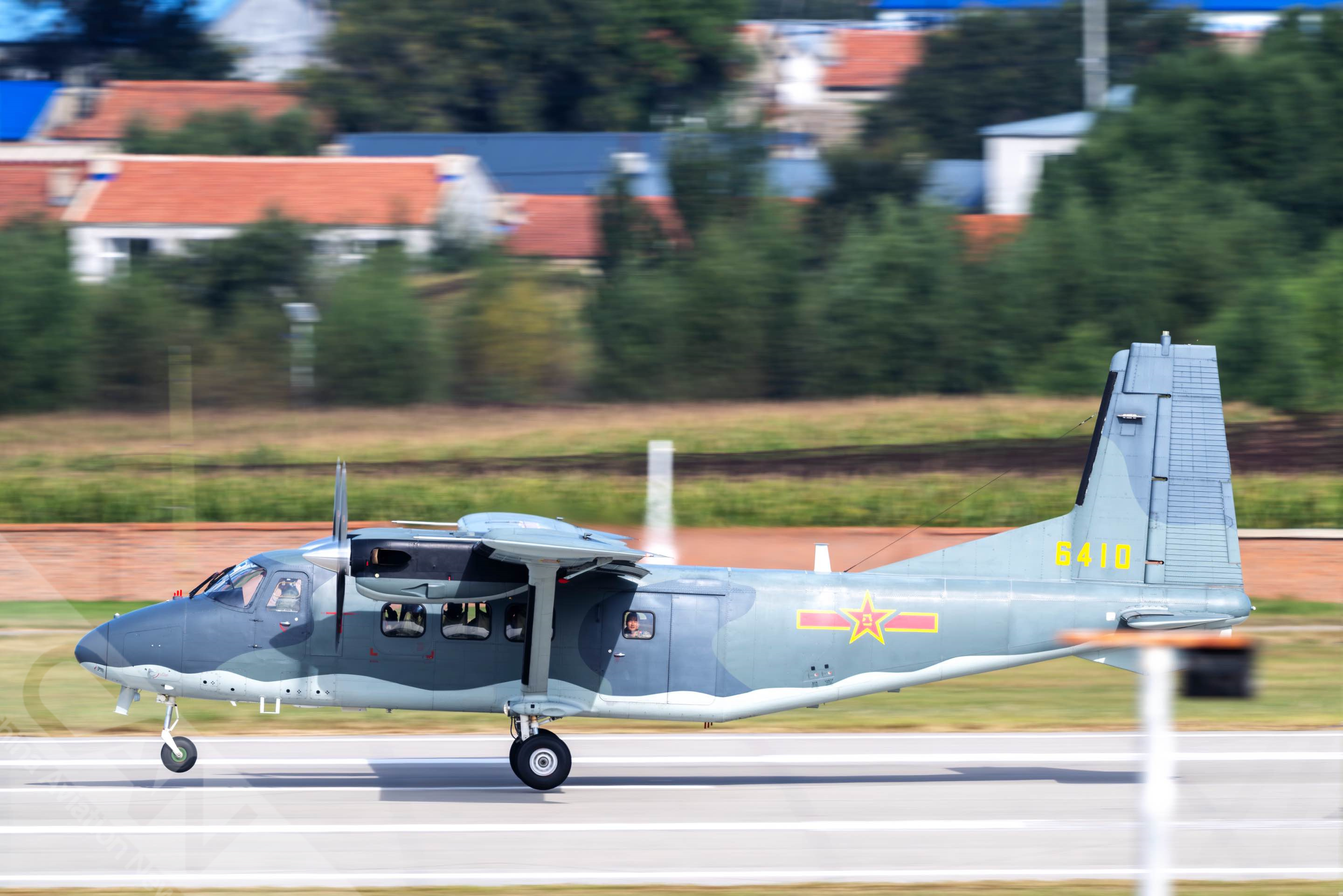 9月19日,2025年长春航空展开幕首日,两架运12D依次起飞,搭载空军航空大学“蓝鹰”跳伞队并进行表演。摄影:曹楠