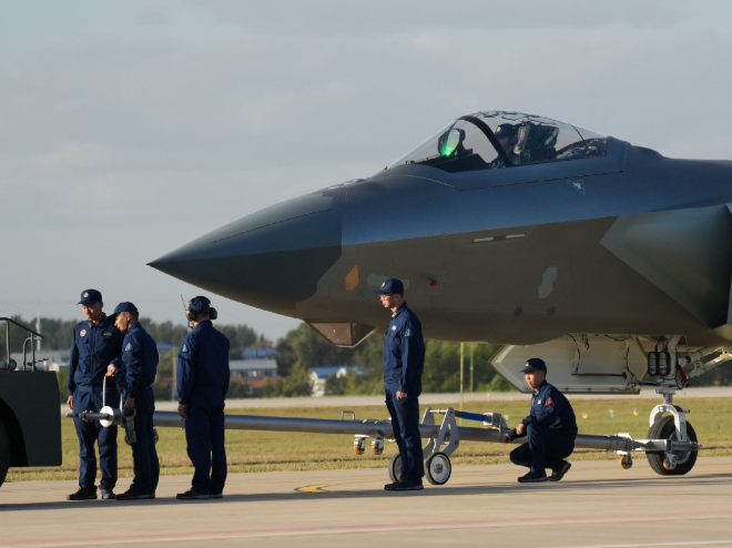 歼20在长春航空展进行…